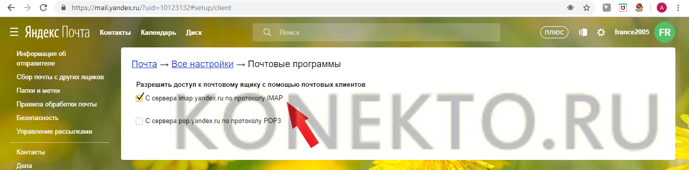 Приведем пошаговую инструкцию для активации протокола IMAP: