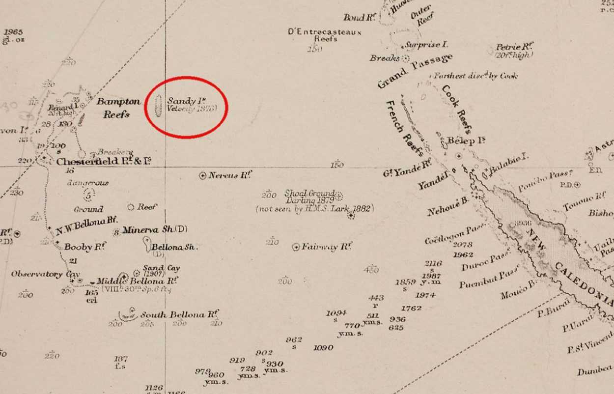 Не то, чтобы на него нельзя было смотреть только на Google Картах. Его теперь вообще нигде не увидеть. Последние данные стали поводом для беспокойства, потому что в 2000 году в 1030 км от восточного берега Австралии к западу от Новой Каледонии остров Сэнди был нанесён на Google Карты. Следующие 10 лет или около того он находился именно по этим координатам в Коралловом море.