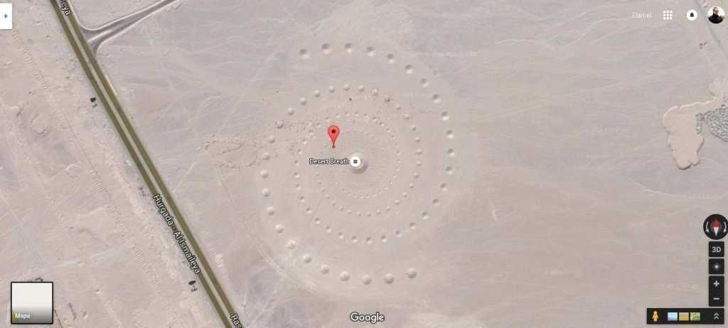 Таинственные симметричные круги на Сахаре могут быть истолкованы как доказательство присутствия «чужих» на нашей Земле. Объяснение этой загадки, однако, гораздо проще. Круги являются делом рук человека. «Desert Breath» это проект группы D. A. ST. Arteam, над которым работа началась в 1995 году. Спонсором установки, композиции в 100 тысяч кв метров. была компания Orascom Development. Архитекторы Александра Страту и Стелла Константинидис отмечали, что «Desert Breath» была создана для того, чтобы человечество могло испытать эффект «бесконечности». Через 19 лет с момента основания, установка все еще видна пролетающим самолетам, но все же медленно рассыпается на наших глазах. Даже бесконечность не длится вечно.