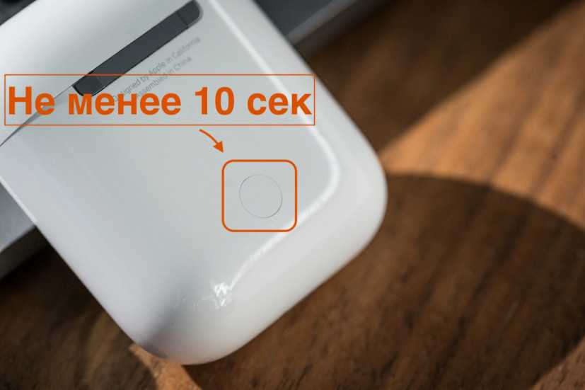 Способ актуален на моделях AirPods. Помогает избавиться от возможного программного сбоя яблочных гарнитур, когда максимальный и минимальный уровни заряда индикатором определяются неверно. А также сброс настроек устраняет проблемы с синхронизацией с iPhone.