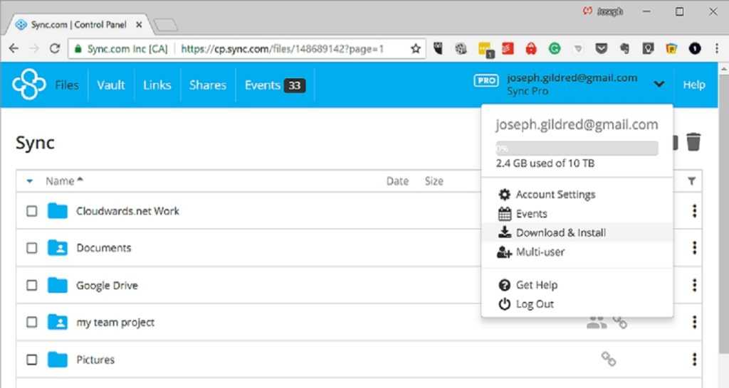 Sync.com – канадское облачное хранилище, которое использует шифрованное соединение.