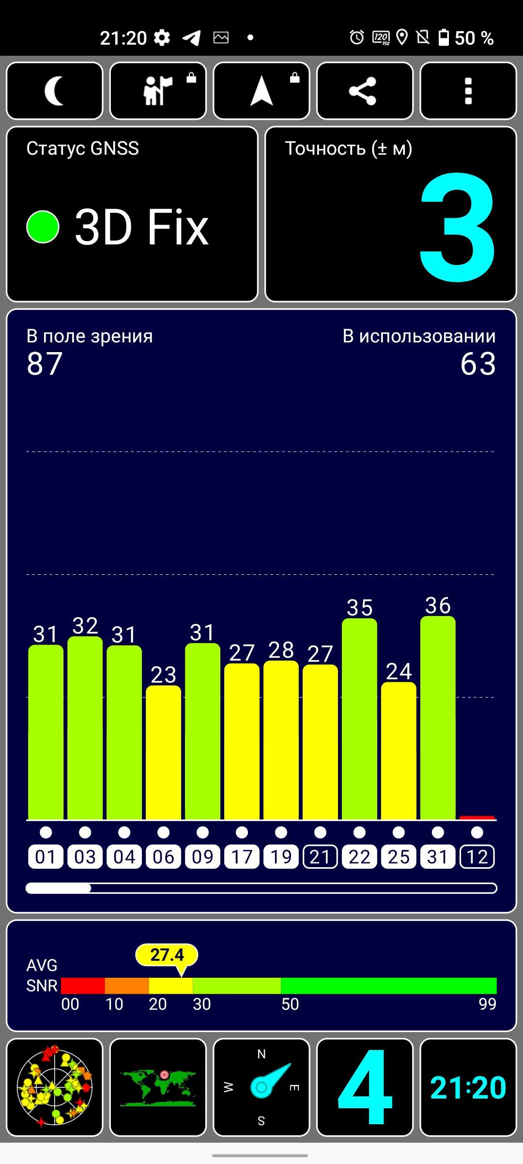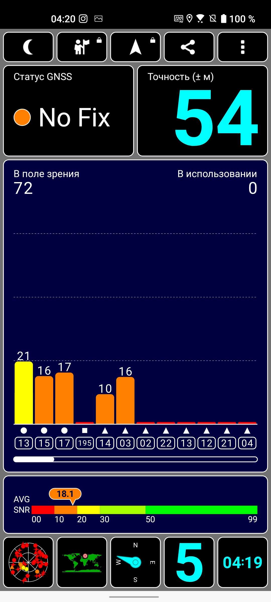 Для геолокации используются системы GPS, GLONASS, Galileo, BeiDou, QZSS и NavIC. В помещениях спутники поймать затруднительно. Это возможно только у окон, а вот на улице «на холодную» спутники обнаруживаются в течении пары секунд. Максимальная точность – до 3 метров, выше поднять значение не удалось.