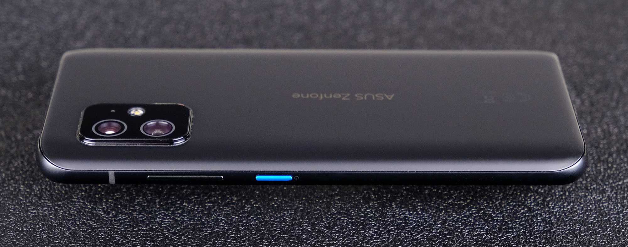 Фронтальная камера закрыта стеклом и немного выступает из корпуса, но не сильно (не более 1 мм). Вес устройства средний среди похожих моделей (169 г). Лёгким Zenfone 8 не назвать.