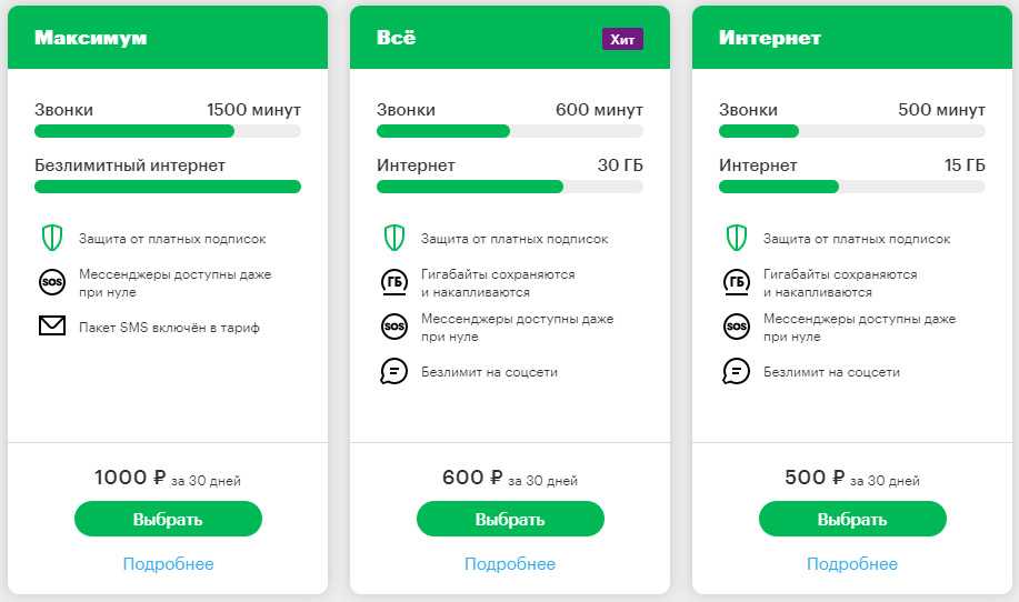 Все тарифы в линейке имеют свои особенности, но их главное качество – они выгодные. Для удобства мы сравнили тарифные планы в таблице.