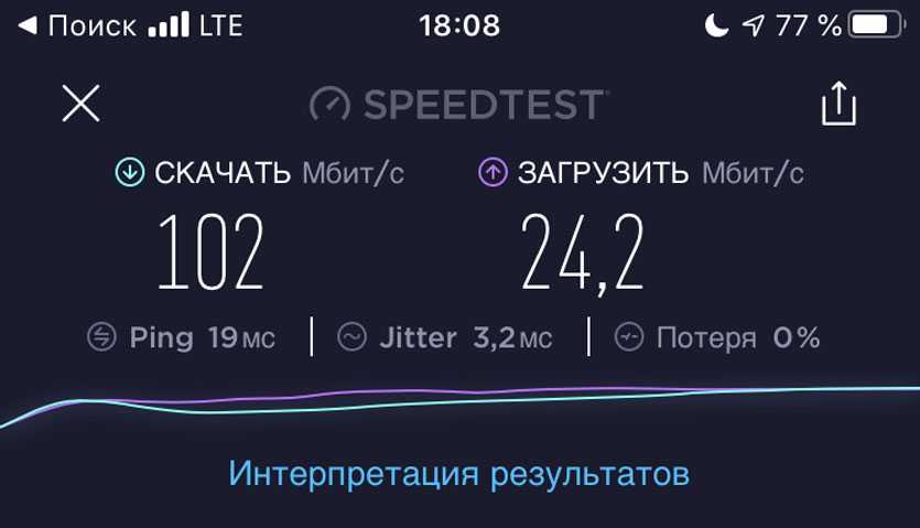 Дома в Москве у меня полный прием, около 100+ Мбит / с в сети МегаФон LTE, тогда как у предыдущего оператора по LTE было около 18 Мбит / с. Я живу в густонаселенном районе, там много вышек.