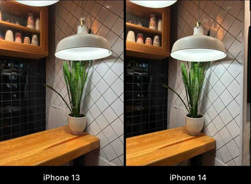 За основные фотографические возможности в iPhone 13 и 14 отвечают 12 Мп основная и сверхширокоугольная камера. Разница между двумя смартфонами есть. Основная камера iPhone 14 отличается более крупной матрицей, диафрагмой 1.5, что позволяет захватывать больше света. Плюс для устранения артефактов во время съемки с плохим освещением была добавлена программная фишка Photonic Engine.