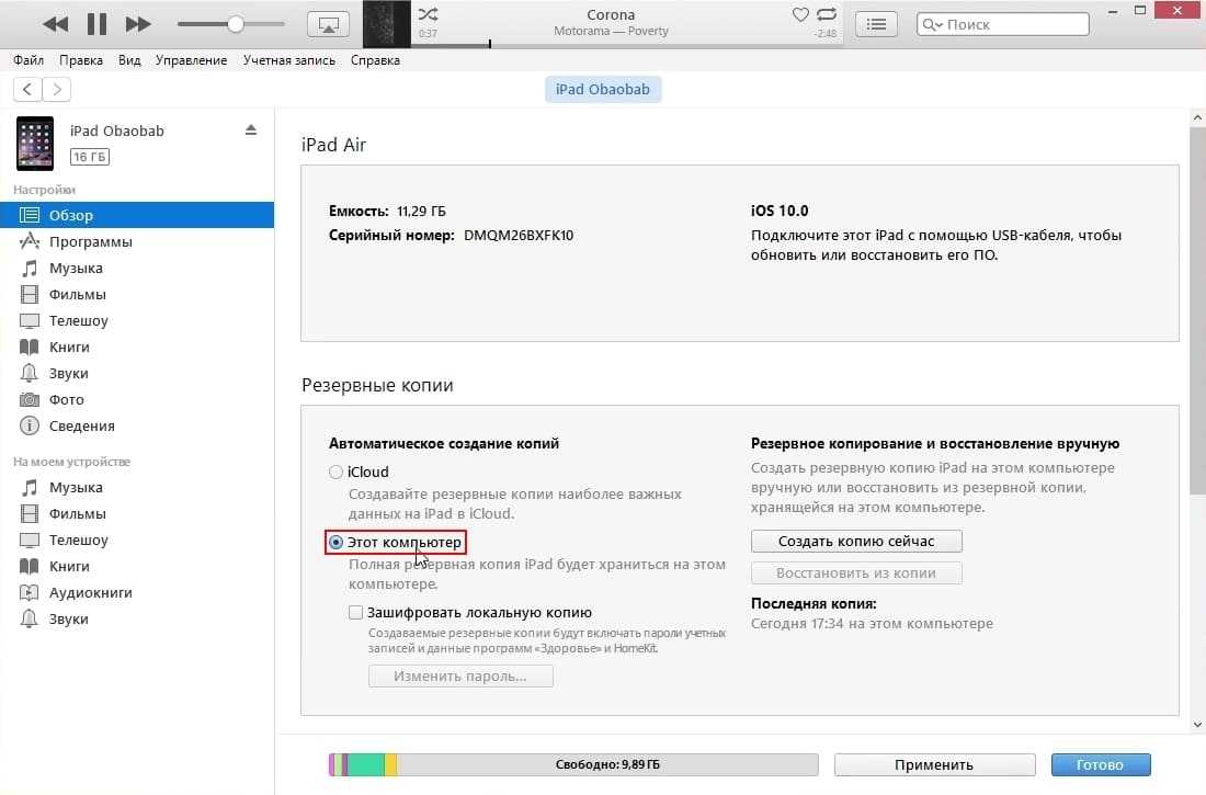 6. Дождитесь завершения вы увидите, что в поле «Последние копии» стоят текущие дата и время – значит, резервное копирование успешно завершено.