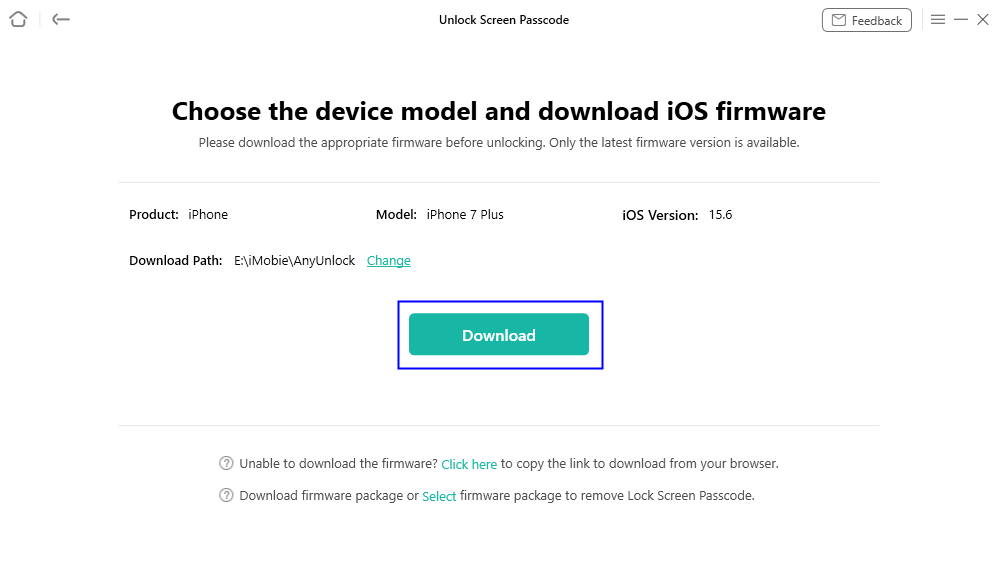 Шаг 3: Нажмите Скачать значок, чтобы загрузить пакет прошивки, соответствующий вашему iDevice.