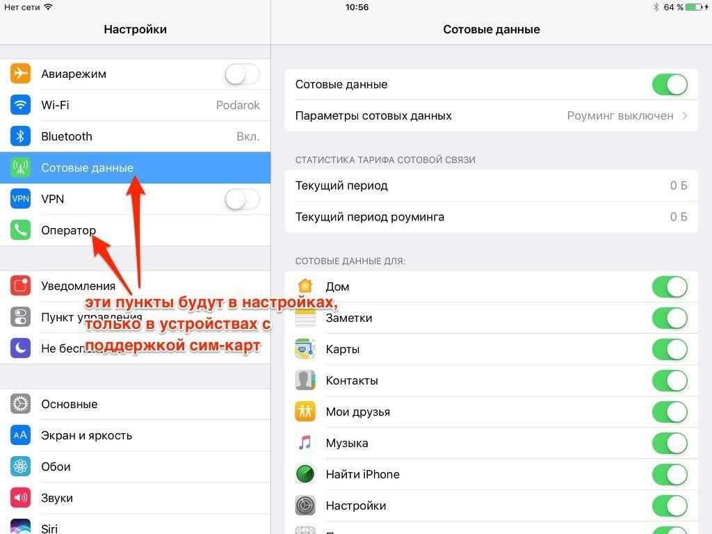 - для обладателей iPad необходимо зайти в раздел «Сотовые данные», где в подразделе «Статистика сотового тарифа» будет все отображаться.