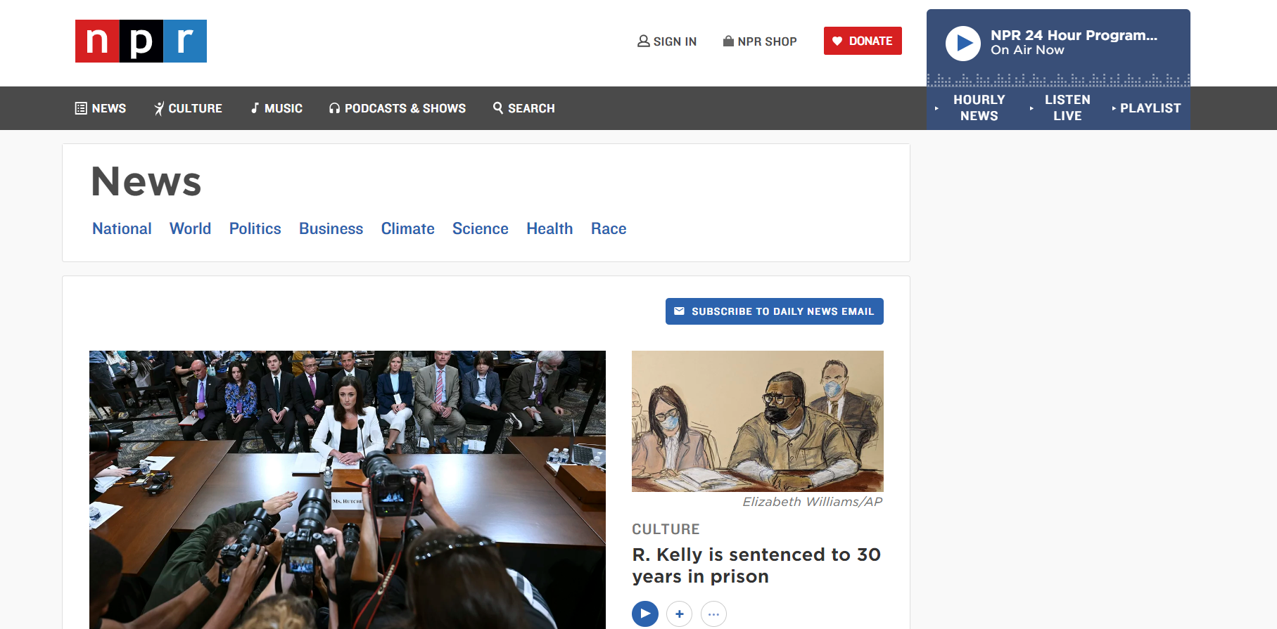 NPR News — это единственное издание, которому вы можете доверять в беспристрастной доставке новостей. NPR — это некоммерческая новостная организация, которая финансируется своими слушателями, а это означает, что у нее нет никаких личных интересов в освещаемых ею историях.