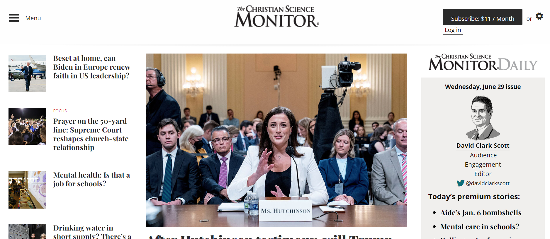Одним из самых надежных источников новостей является Christian Science Monitor. CSM существует уже более века, и их задачей всегда было предоставление точных и непредвзятых отчетов.