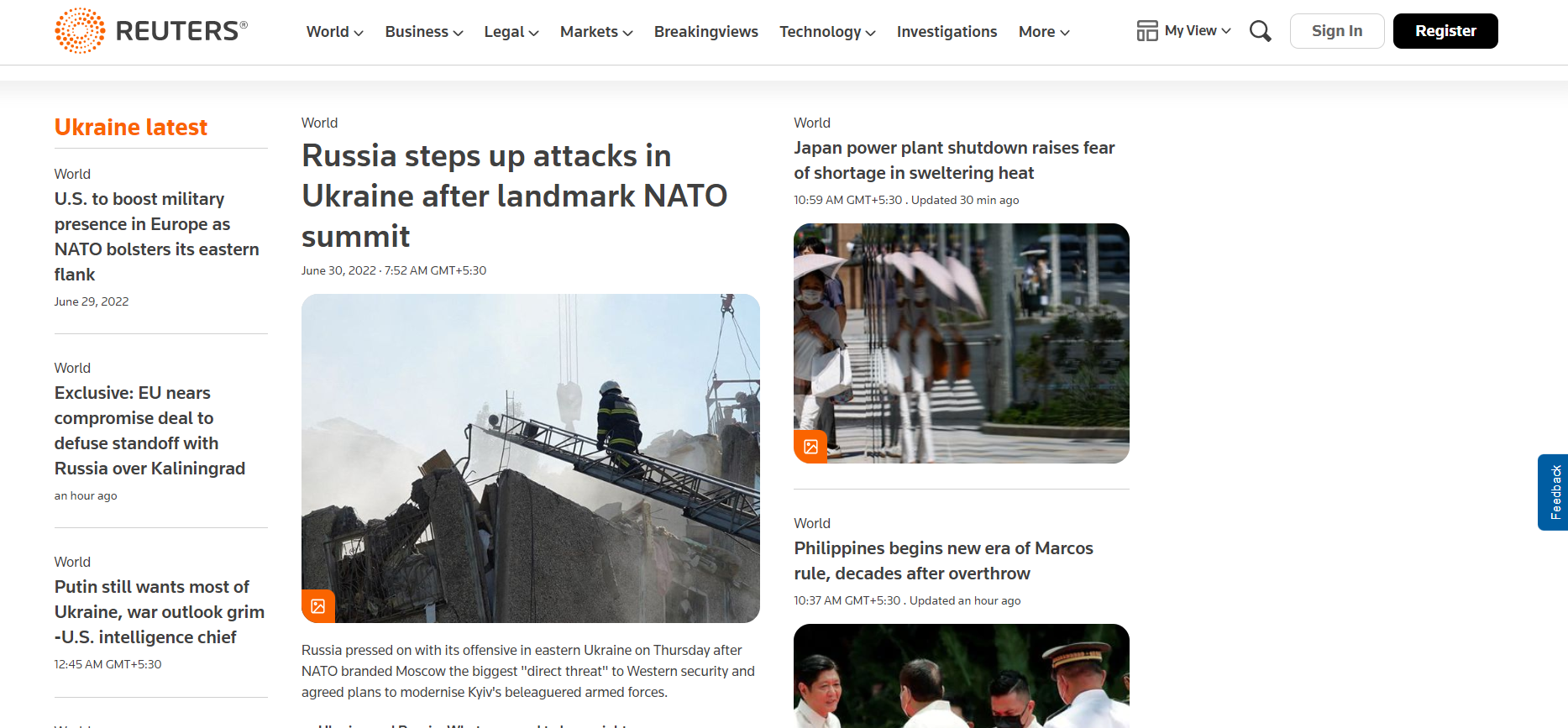 Если вы ищете лучший источник объективных новостей, не ищите ничего, кроме Reuters. Имея репортеров в более чем 200 городах по всему миру, Reuters освещает все: от политики и бизнеса до развлечений и спорта.