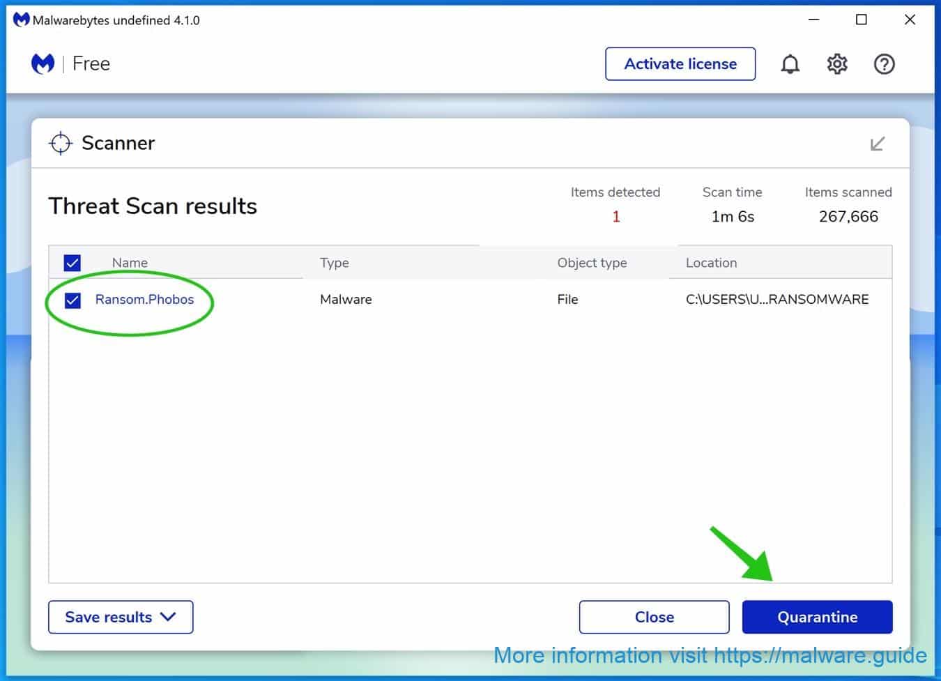 Примечание: Malwarebytes не будет восстанавливать или восстанавливать ваши зашифрованные файлы. Это однако, удалить Кстати вирусный файл, заразивший ваш компьютер с Кстати программа-вымогатель и загружает файл программы-вымогателя на ваш компьютер; это известно как файл полезной нагрузки.