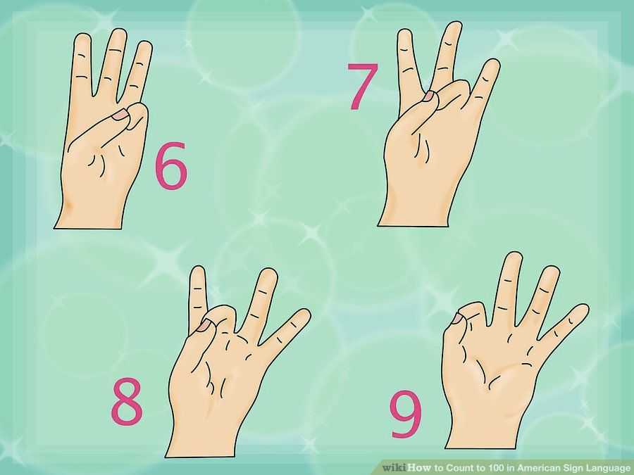 In American Sign Language, counting gestures are shown on one hand, with the numbers six through nine communicated by touching a different finger on the thumb. Given this, the number nine is represented by what appears to be the OK Hand.