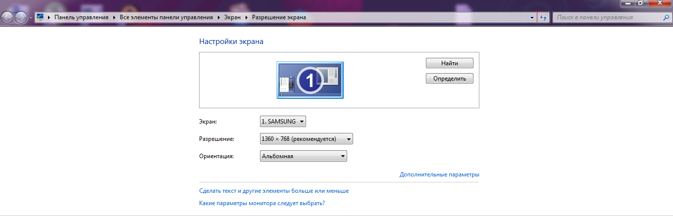 Высветится панель с «говорящей» иконкой «разрешение экрана», где обращаем внимание на верхнее числовое значение с припиской «рекомендуется». Именно его и выставляем в играх для наилучшей картинки