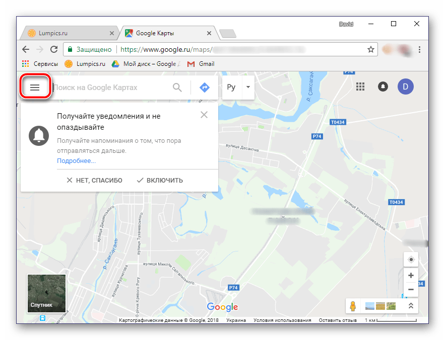 - Перейдите по указанной выше ссылке. Если это потребуется, авторизуйтесь, введя логин (почту) и пароль от той же учетной записи Google, которую используете на своем смартфоне или планшете. Откройте меню, кликнув по трем горизонтальным линиям в верхнем левом углу.