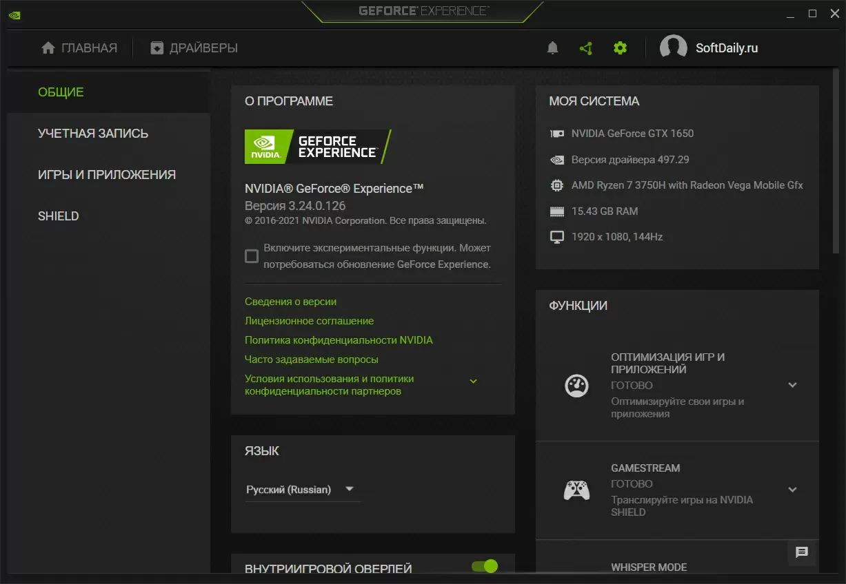 Скачайте Nvidia GeForce Experience 2022 бесплатно