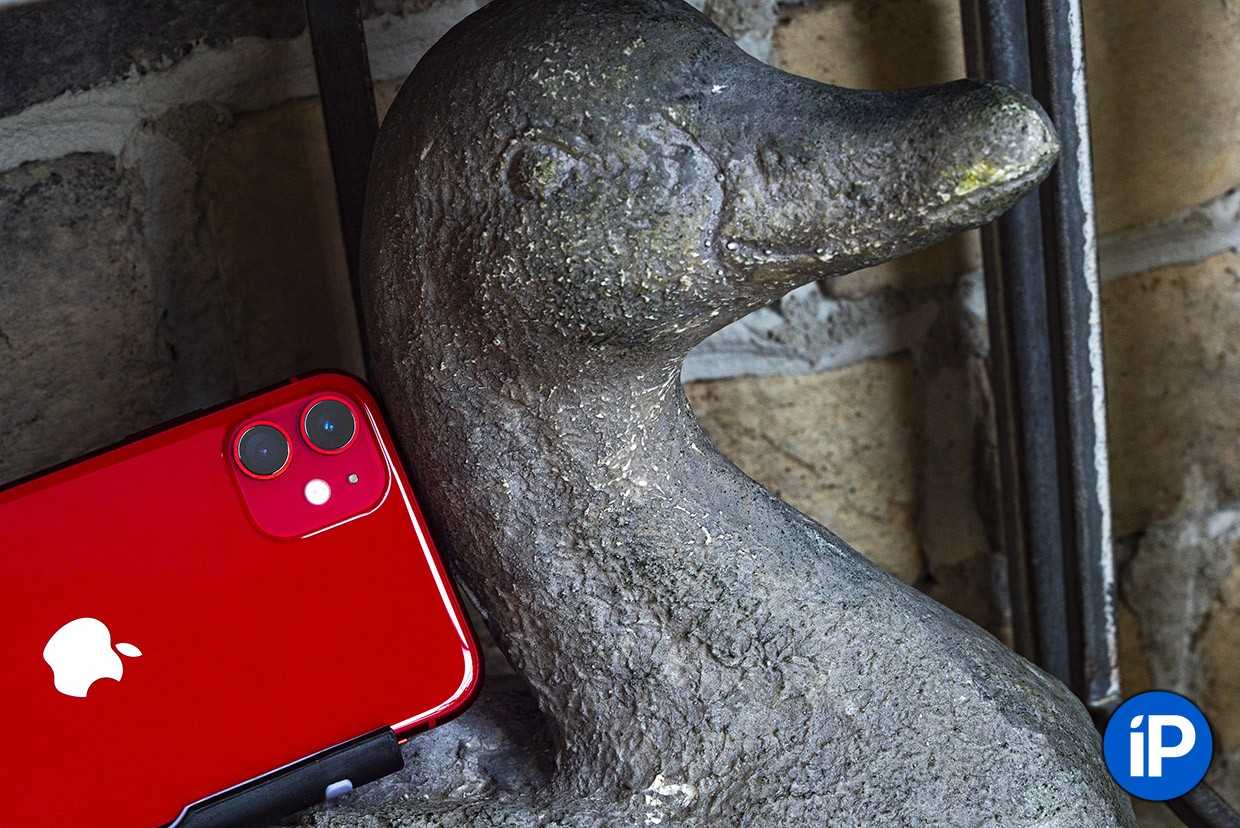 Если в «прошке» это объяснялось наличием трёх объективов, то в «одиннадцатом» их осталось 2. Только телевик заменили на ширик. И знаете, мне нравится, как это выглядит в жизни.