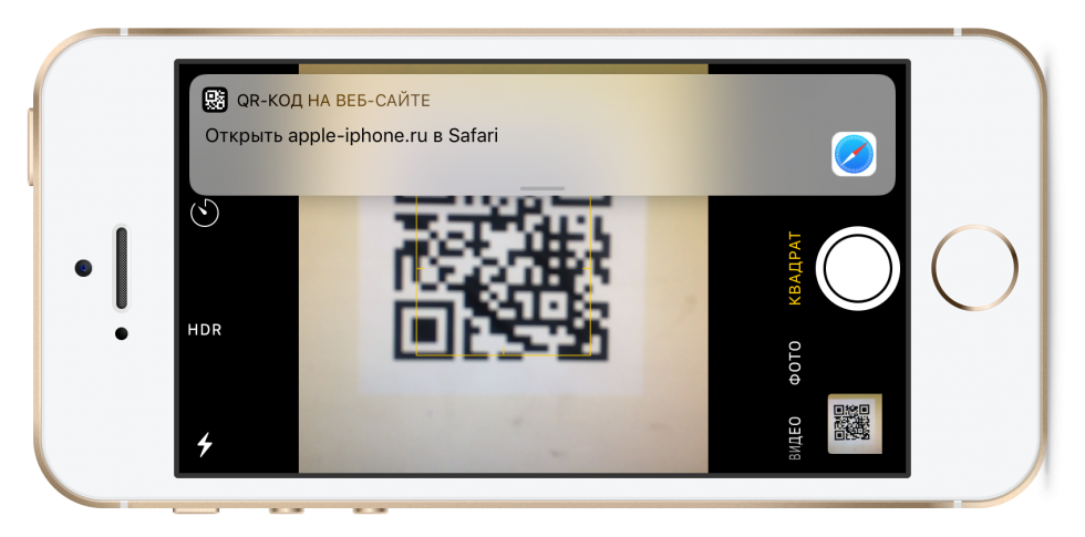 Также приложение «Камера» получило возможность сканирования QR-кодов. Для выполнения сканирования достаточно навести камеру на QR-код и он тут же будет распознан. После успешного распознавания iOS предложит способ дальнейшего использования, зашифрованного в QR-коде контента. Например, если в коде найден номер телефона, система предложит позвонить на него, а если ссылка на веб-сайт, то открыть ее в Safari.