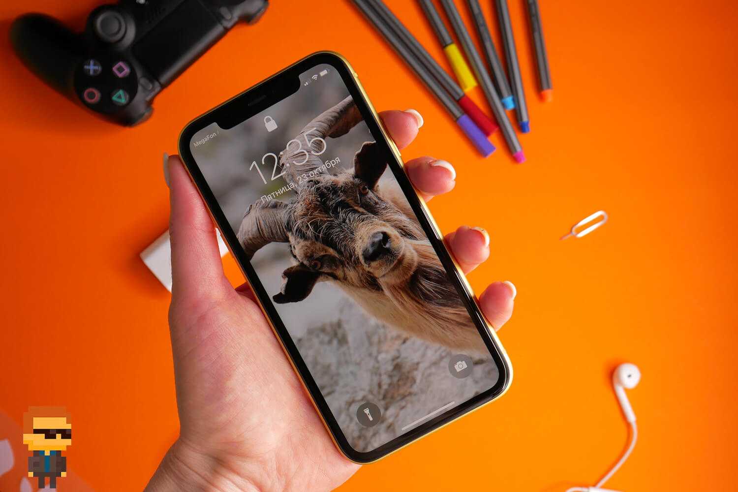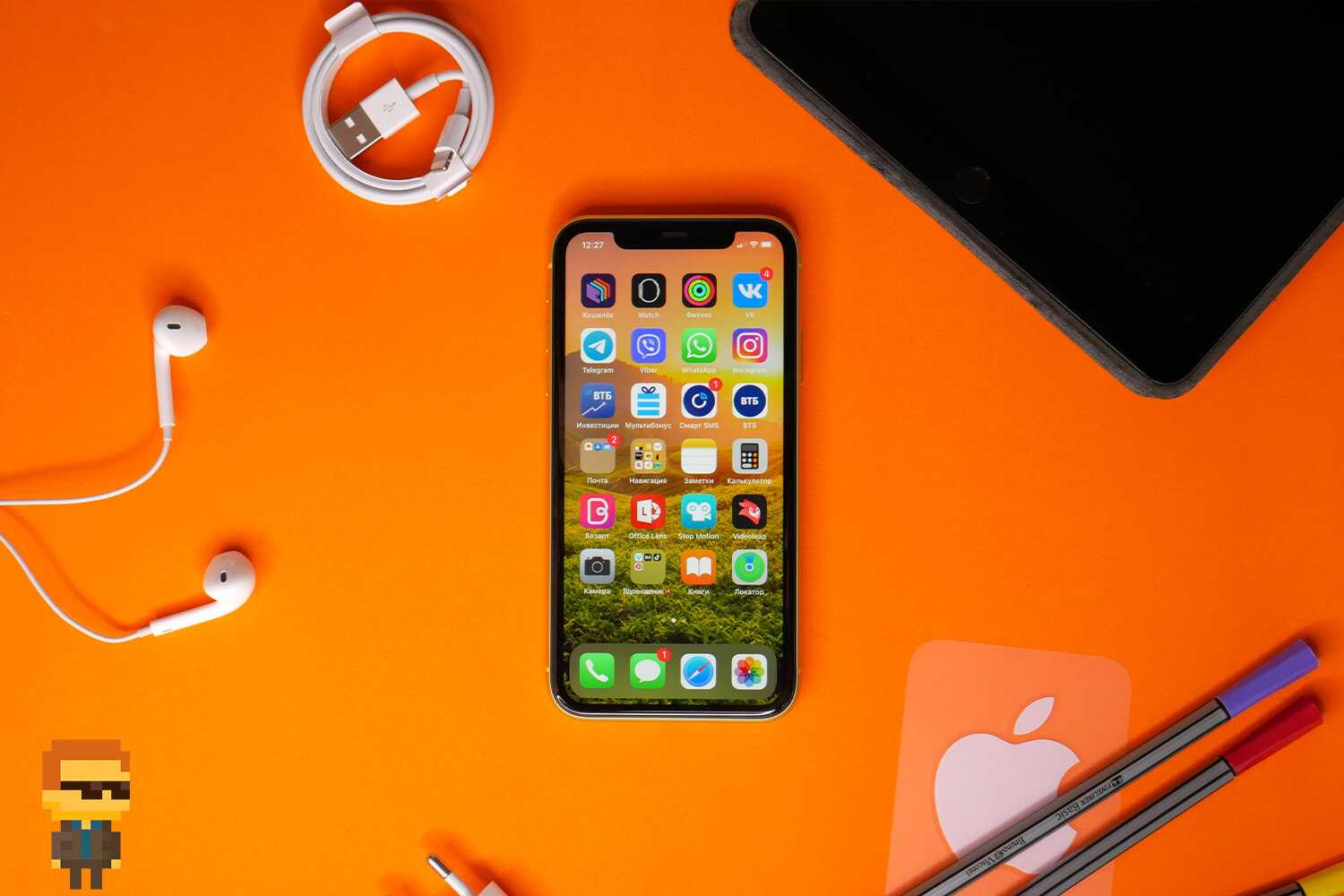 Плотность изображения ЖК-дисплея Liquid Retina номинально невысока — 326 точек на дюйм. Тот случай, когда качество важнее показателей. Объекты, которые отражает экран, не «раздваиваются». Указывает на отсутствие между стеклом и матрицей воздушного слоя.