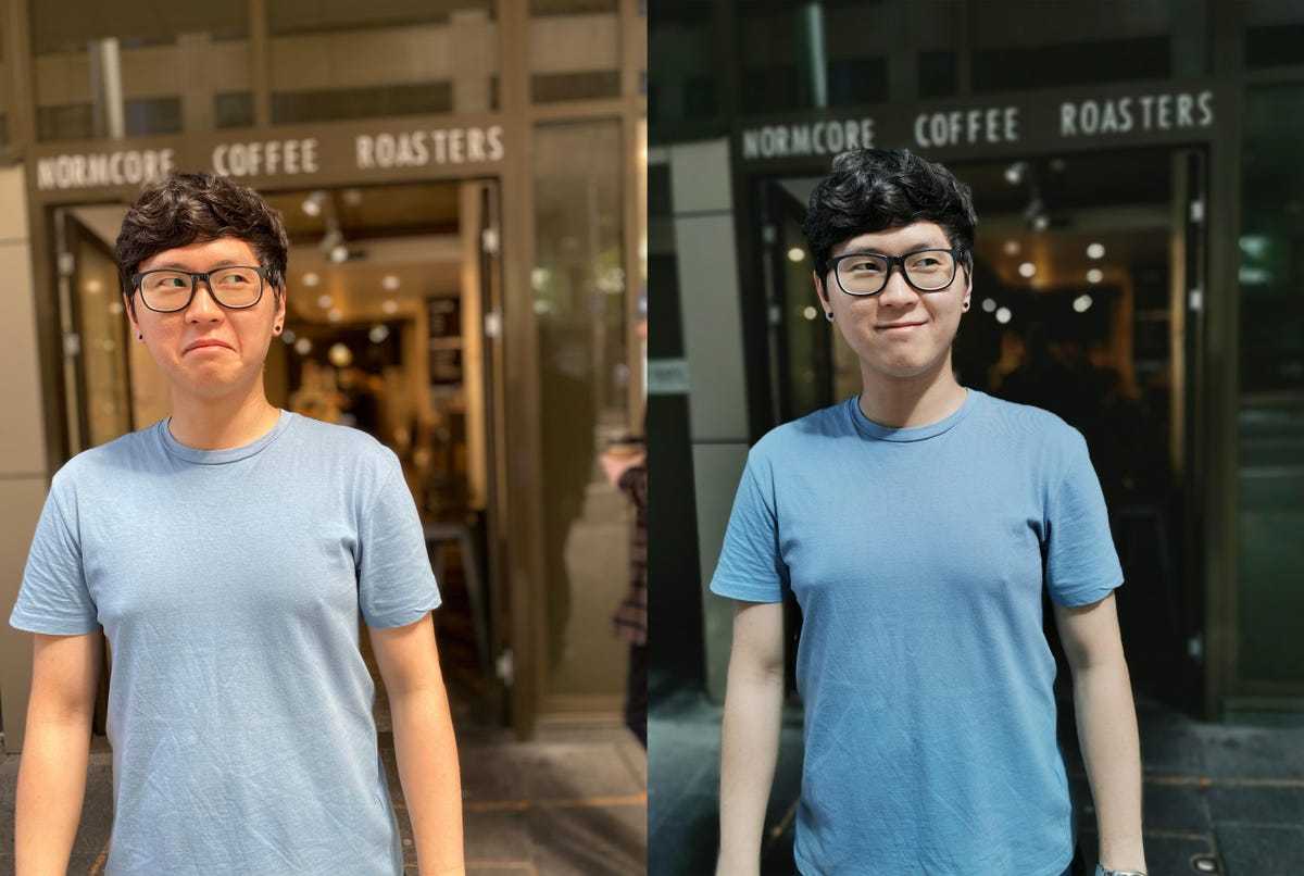 These photos taken outside a cafe look like they were shot on different days. Outside the gulf in temperature (more on that later), you’ll notice the P30 Pro smoothed out some of the creases on Chanho’s shirt.