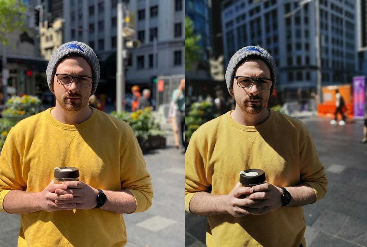 Here’s a set of photos taken in the harsh sunlight. Not only are the colors more muted in the P30 Pro’s shot, when comparing the two, the P30 Pro’s affect on Jackson’s skin almost makes him look sickly. (It’s the software, Jackson, not you.)
