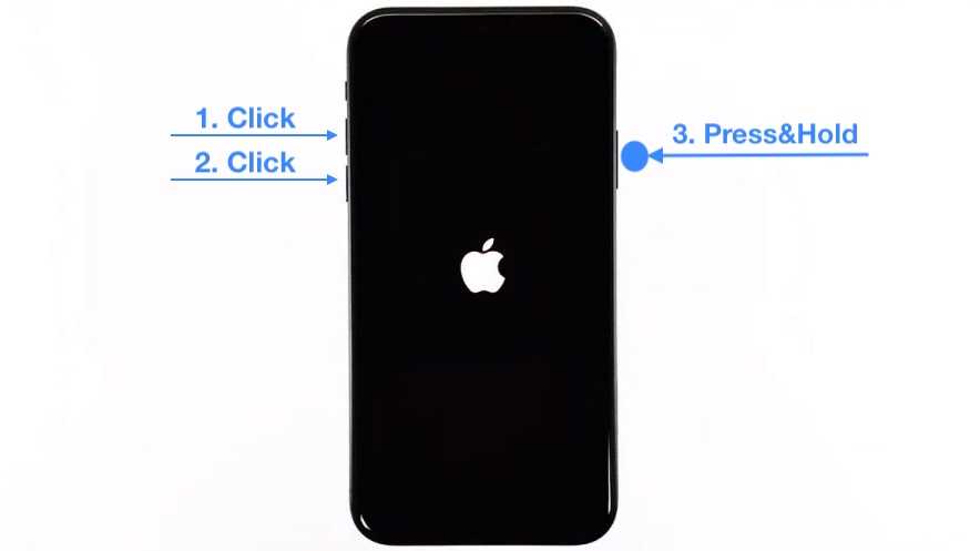 Как: Кратко нажмите и отпустите Увеличить громкостьс последующим Убавить звук а также нажмите и удерживайте боковую кнопку пока на экране не появится логотип Apple. Отпустите и будьте терпеливы, пока ваше устройство перезагружается.