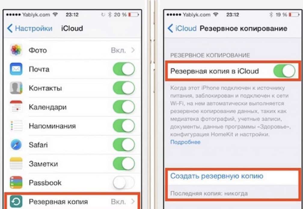 В том случае, если невозможно создать полный бекап устройства, создаётся облачная копия через iCloud.