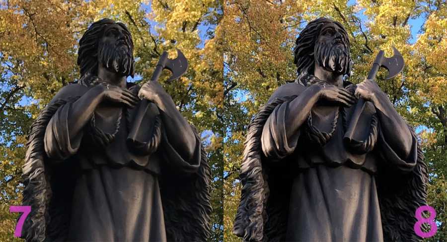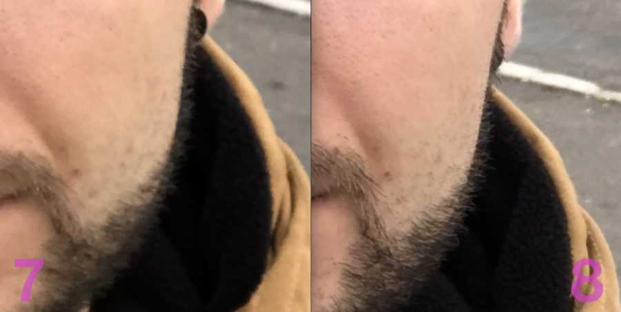 Тут пруфы лучше любых слов. Сегодня утром попросил взять старый и новый айфоны, когда пойдут гулять с сыном. Просто навела камеру и снимала на стандартных настройках.