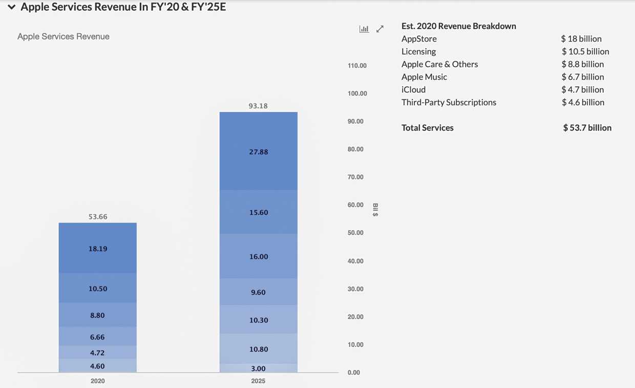 Компания готова делать реальный порог входа ниже, потому что выручка от их сервисов уже больше, чем продажи Mac, iPad, Apple Watch и AirPods вместе взятые. А самые большие деньги из этих услуг приносят App Store, лицензирование (включая отчисления Google за поиск по умолчанию), Apple Care, Apple Music и iCloud.