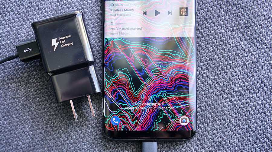 Средняя скорость зарядки Galaxy S7 за 30 минут равна 50%, а за полтора часа телефон заряжается полностью.