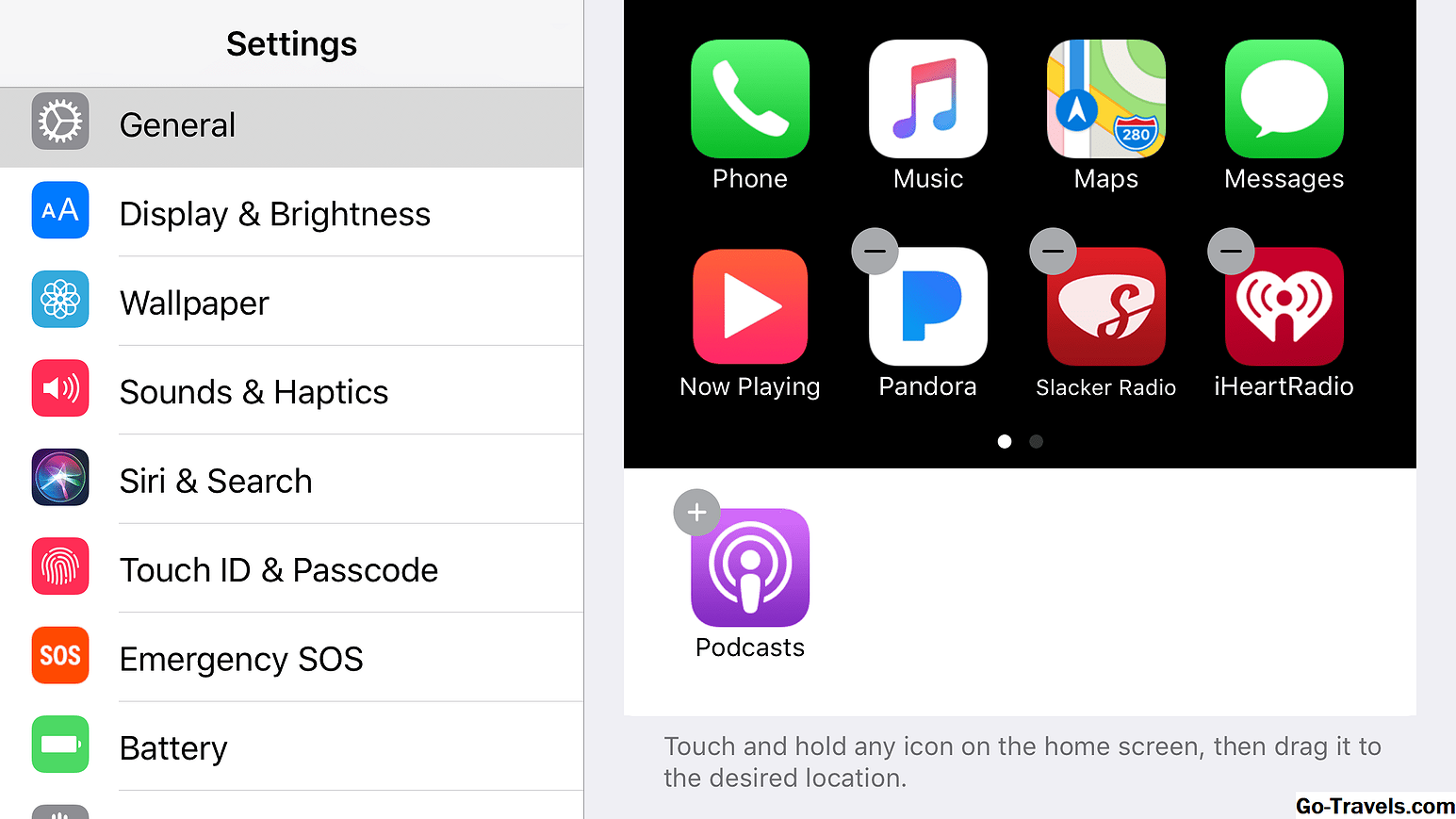 - Настройки автомобиля содержат виртуальный экран CarPlay. Вы можете перемещать приложения вокруг этого экрана так же, как и на iPhone: нажмите и удерживайте, чтобы «поднять» приложение и держать палец на дисплее во время его перемещения. Чтобы отказаться от приложения, просто поднимите палец.
