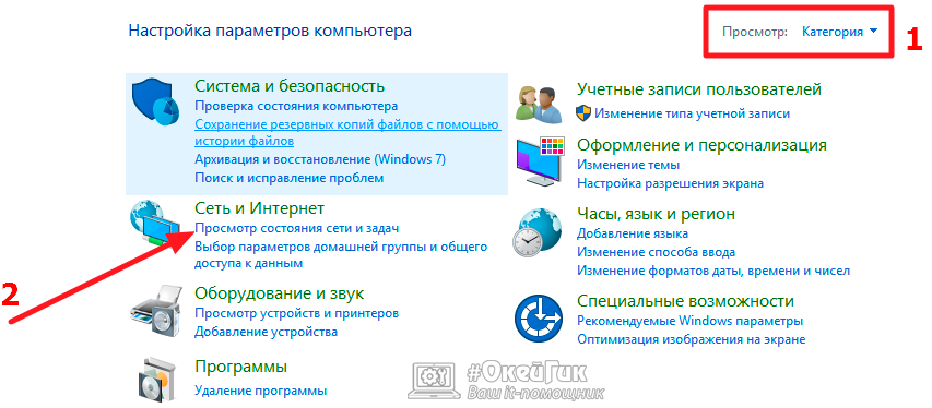 - Откроется небольшое меню, в котором следует нажать на «Центр управления сетями и общим доступом».
