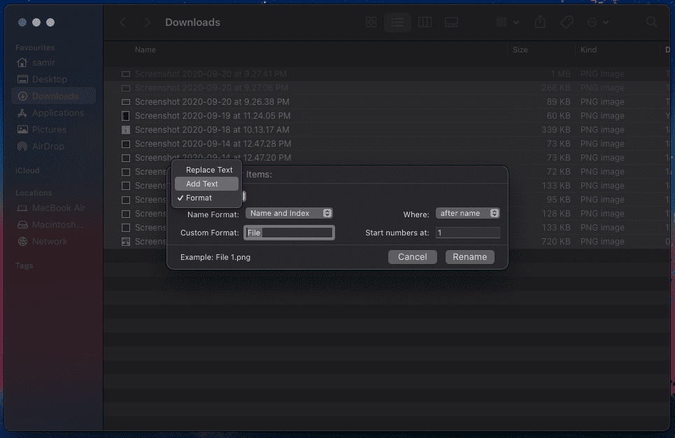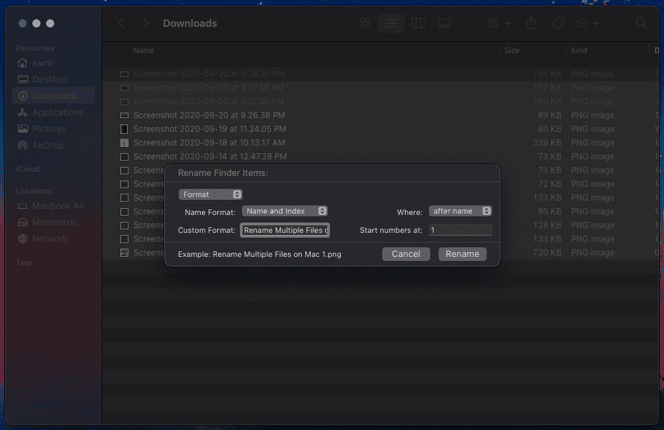 Пакетное переименование нескольких файлов одновременно с помощью Finder на Mac