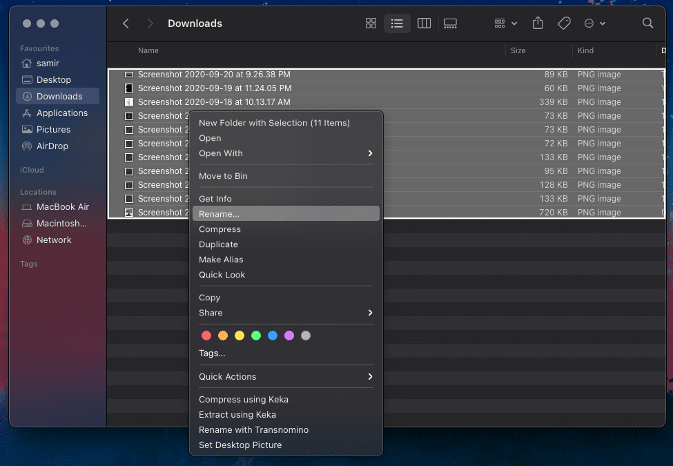 Примечание. Начиная с macOS 11 Big Sur, элементы «Переименовать XX» (xx — количество выбранных файлов) будут отображаться как «Переименовать.