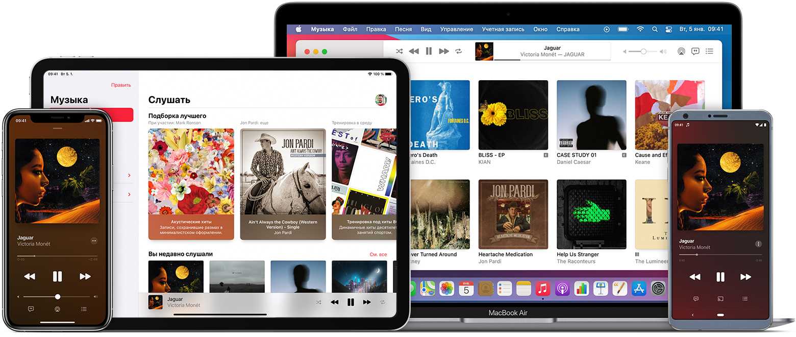 Слушайте миллионы музыкальных композиций в режиме потокового воспроизведения, получайте рекомендации и наслаждайтесь доступом к медиатеке на всех устройствах.