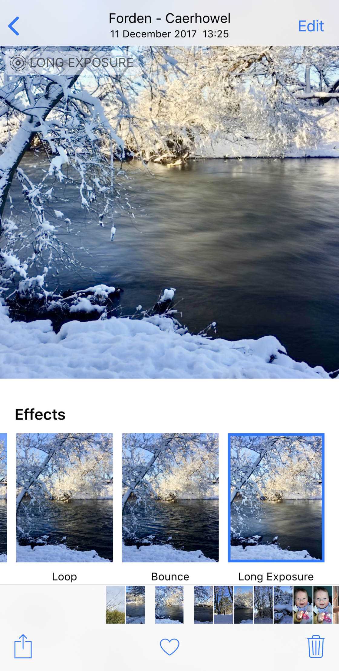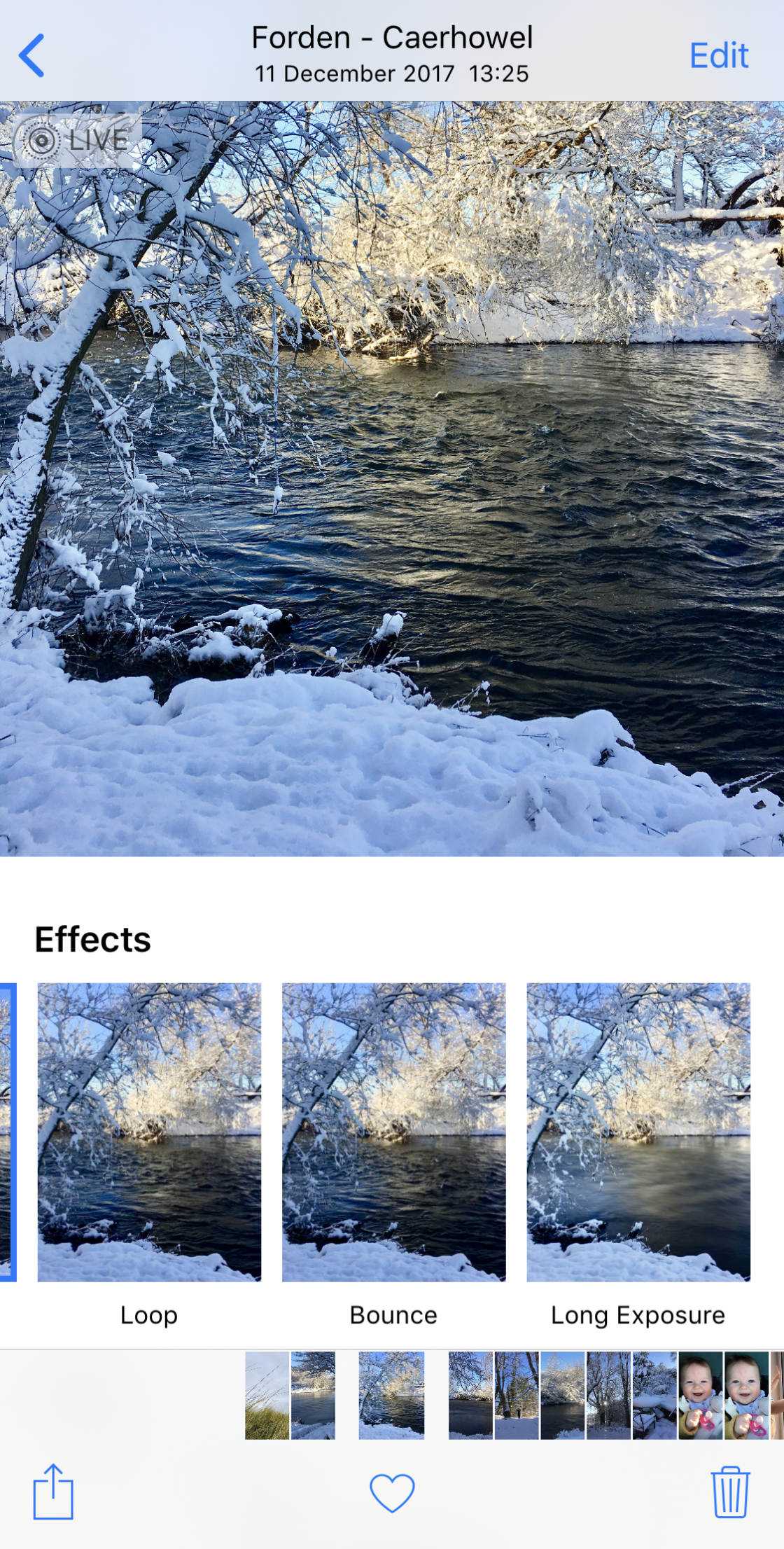 Чтобы получить доступ к этим эффектам, откройте Live Photo и проведите пальцем вверх.