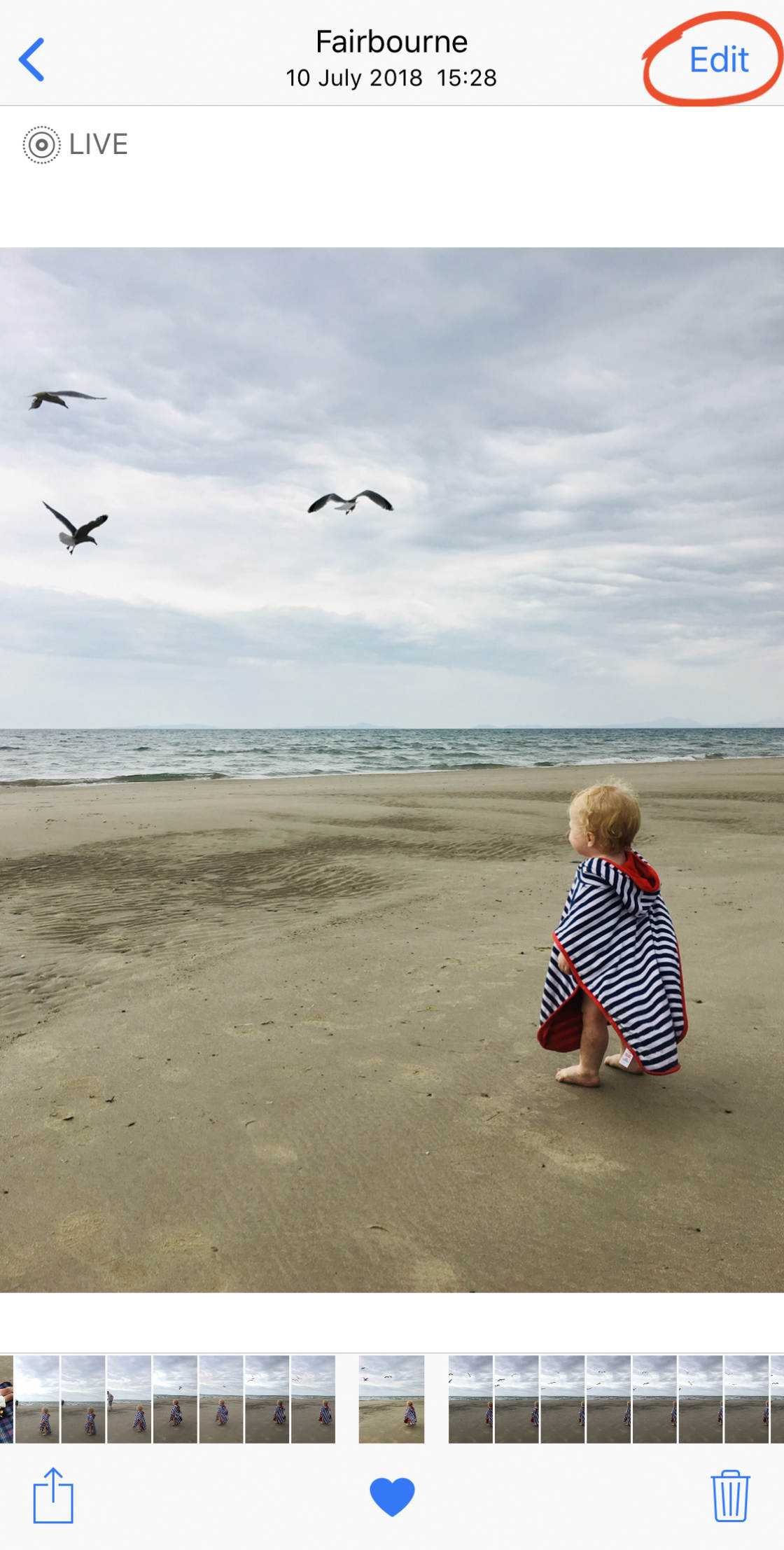 Если вы’ хотите преобразовать свою Живую фотографию в неподвижное изображение, нажмите Редактировать в верхней части Живой фотографии.