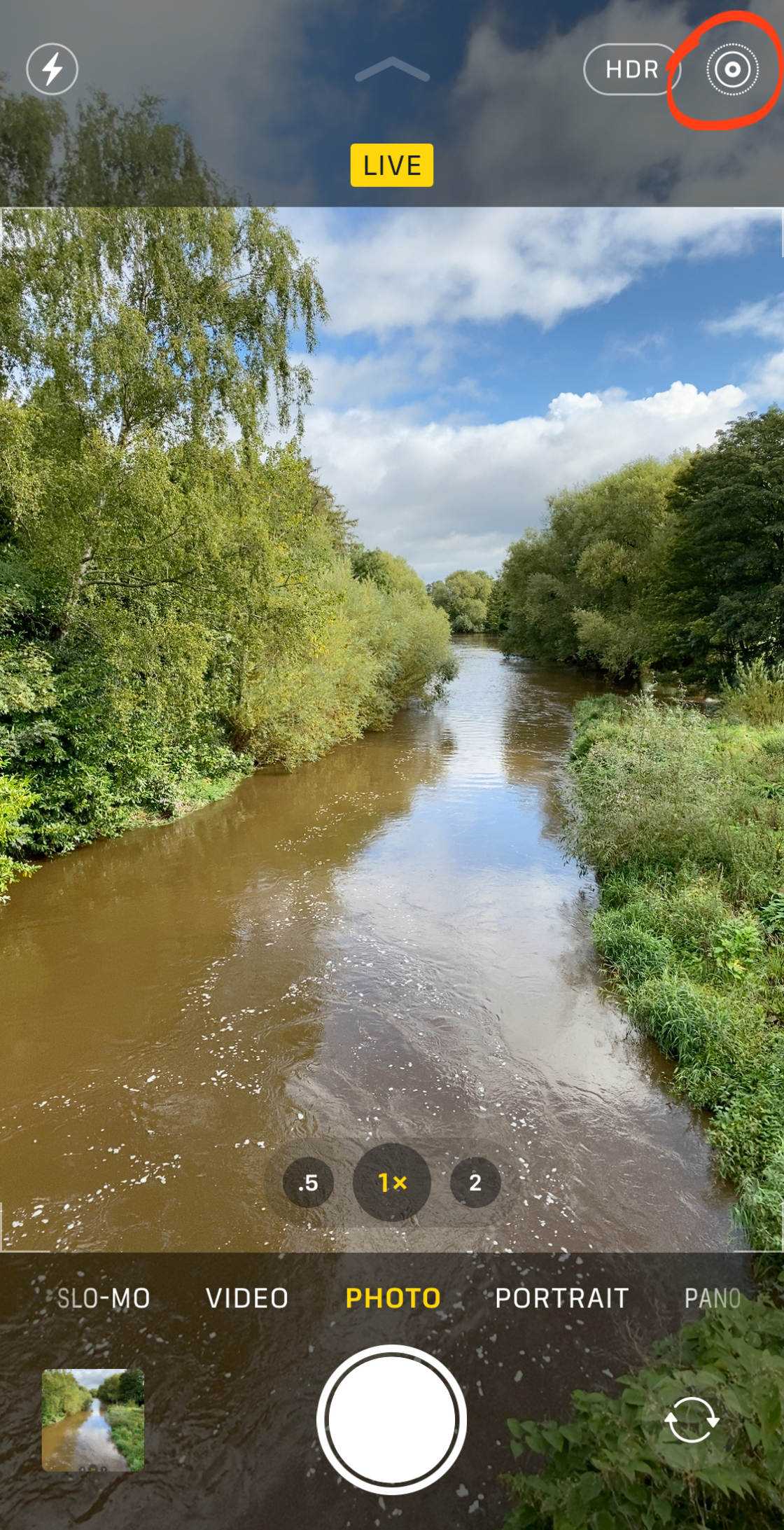 Чтобы сделать Live Photo, убедитесь, что значок Live Photos в верхней части экрана включен. (Если значок имеет линию, он выключен)