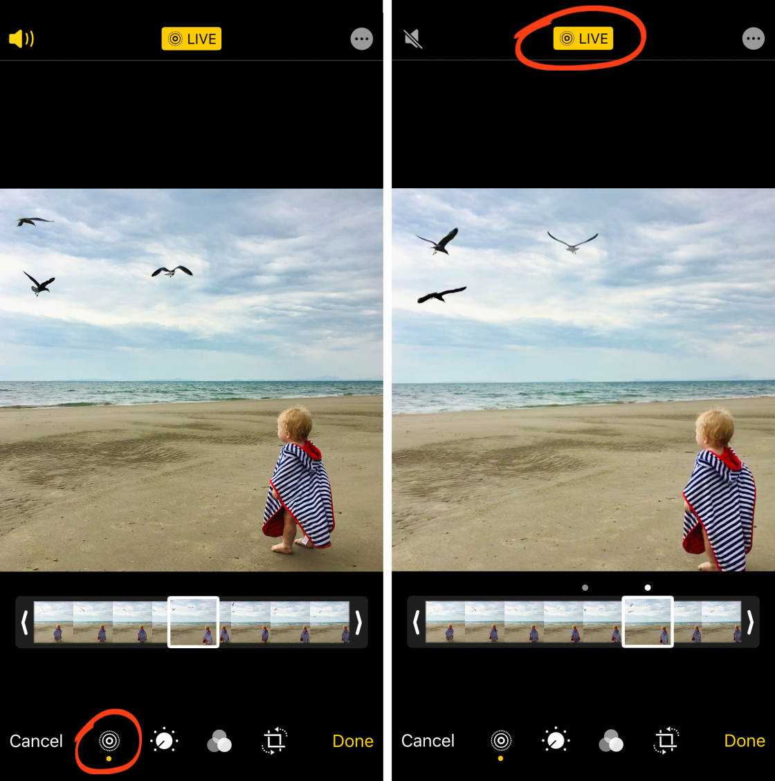 Анимация и звук Живых фотографий теперь отключены. Но вы можете в любой момент вернуть его в режим «Живого фото», нажав Живое в верхней части экрана.