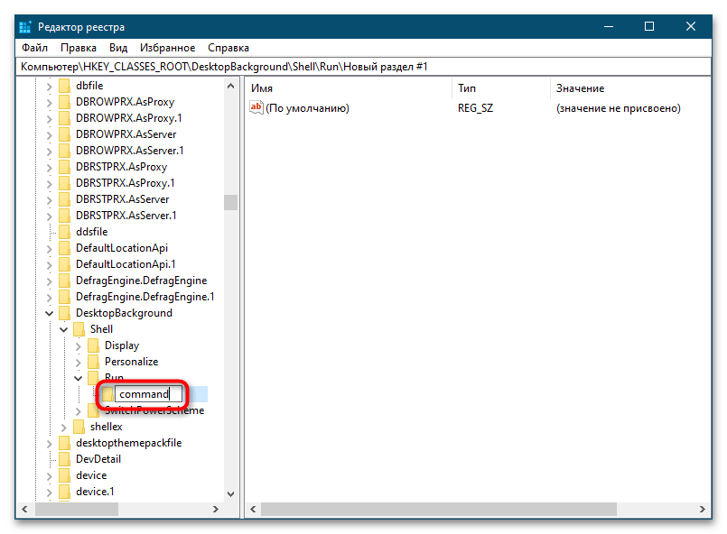 значение «по умолчанию», содержащее наименование команды контекстного меню, например, «Command Prompt Here».