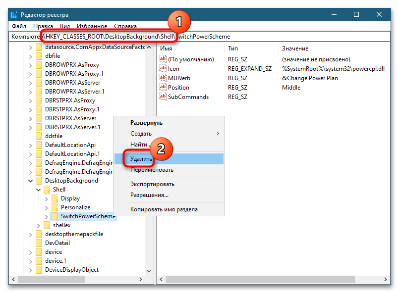 - Выберите соответствующий названию пункта меню подраздел ключа и отредактируйте значение по умолчанию, как было показано выше, либо удалите подраздел целиком.