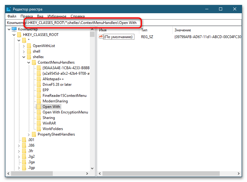 Информация, относящаяся одновременно ко всем типам файлов, хранится в подразделе «*» ветви реестра