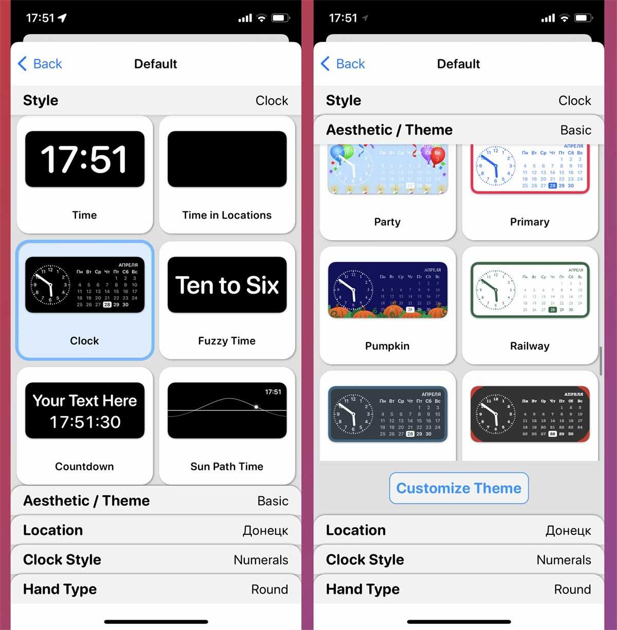Каждый из добавленных виджетов можно настроить отдельно от основного, применив одну из предустановленных тем или настроив карточку самостоятельно. Все панели имеют тонкие подстройки: выбор шрифта, фонового изображения, стиля часов и т.п.
