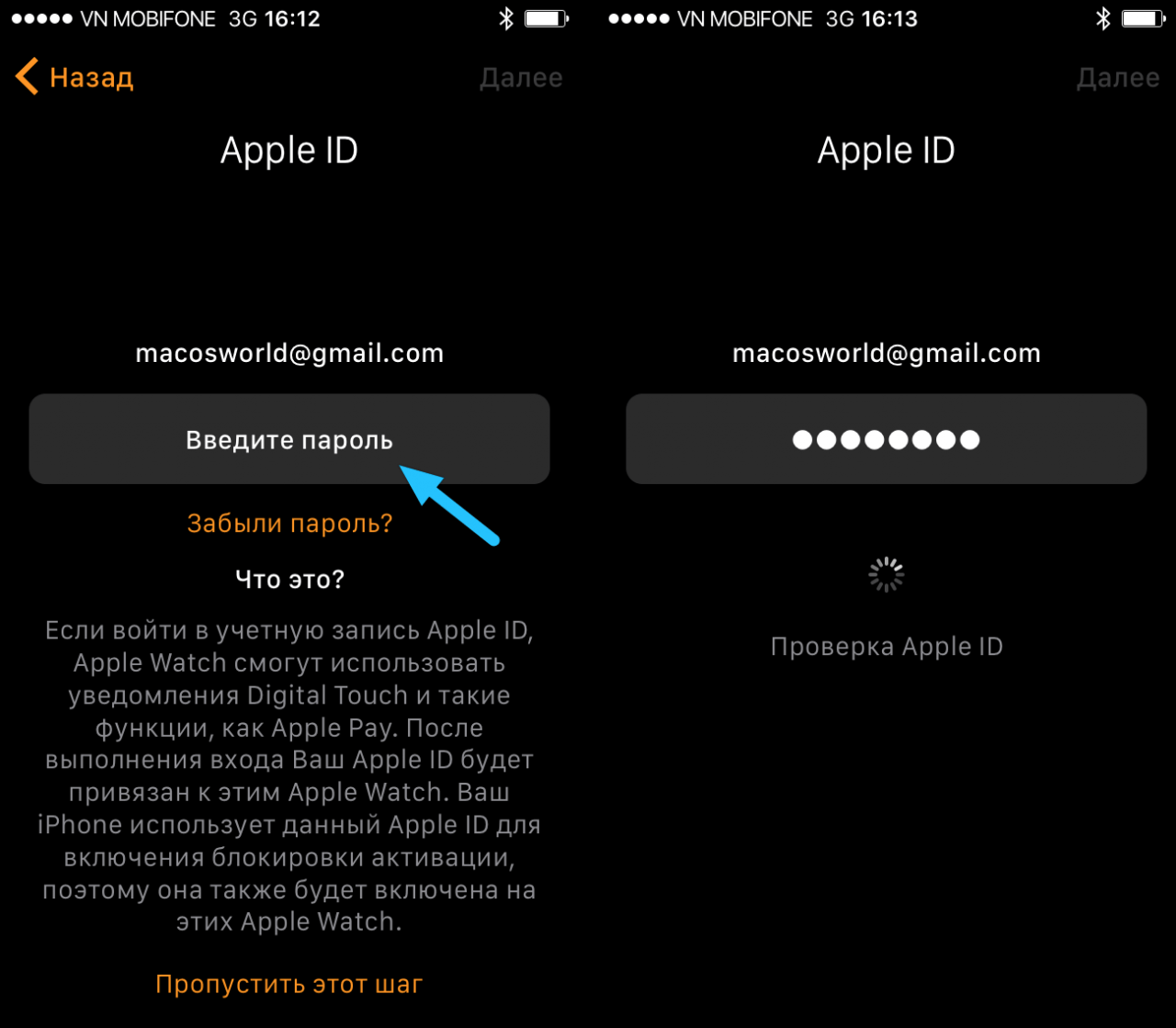 Если запрос о Apple ID не появился, вход можно осуществить позже в программе Apple Watch: