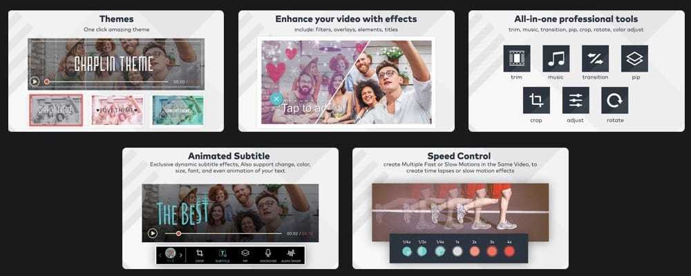 Редактор видео с удобным пользовательским интерфейсом и множеством функций. Приложение использует более 400 миллионов пользователей для создания видеороликов и слайд-шоу из фотографий. Превращайте ежедневные моменты своей жизни в уникальные видеоролики и делитесь со своими друзьями!