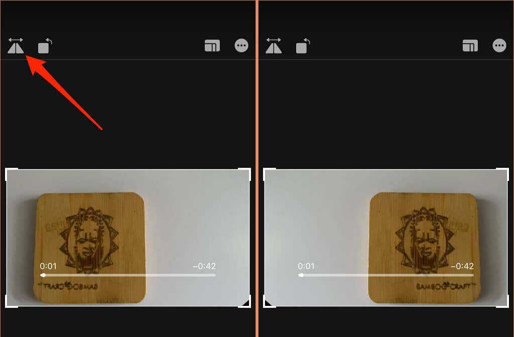 In the “Crop” section, tap the triangle-like icon in the top-left corner to flip the video. Tap the icon again to flip the video back to its original state.