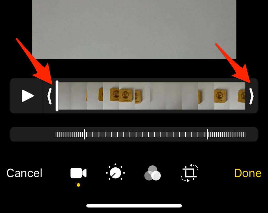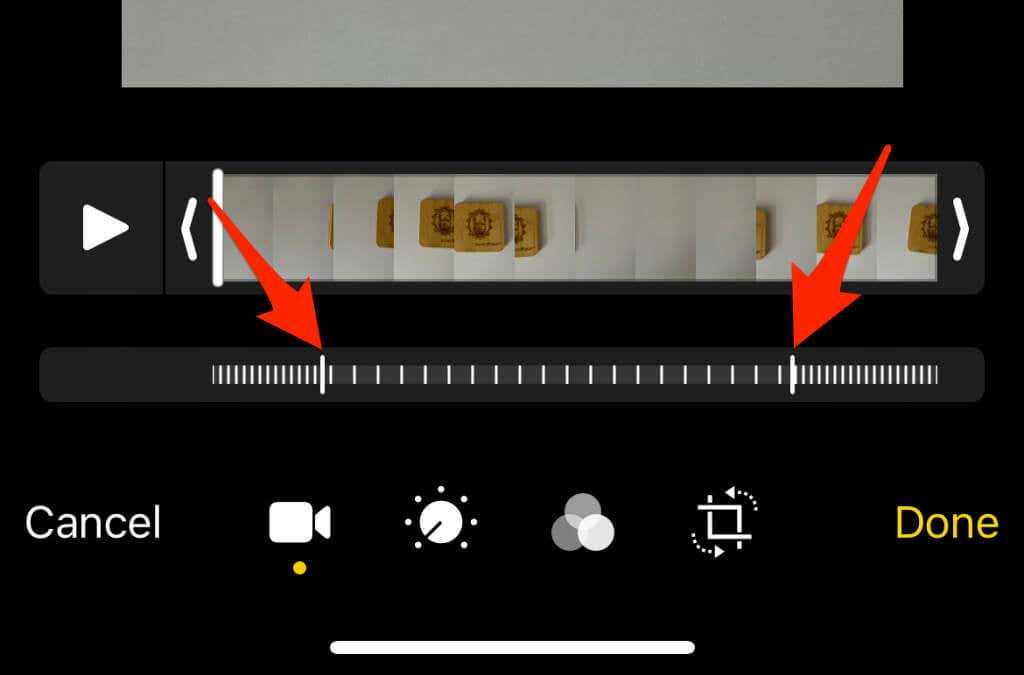 - The spaced-out section in the next timeline bar highlights the portion of the video that plays in slow-motion mode. Drag the left and right vertical lines to trim the duration of the slow-motion effect.