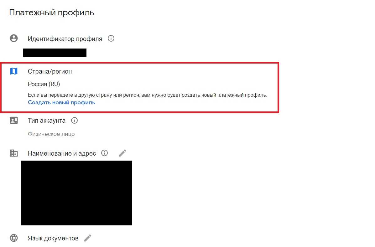 - В вашем аккаунте Google создайте новый платежный профиль.
