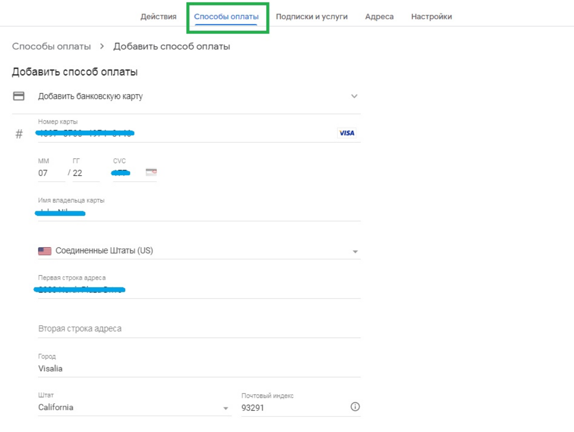 - Добавьте в способах оплаты вашу зарубежную карту.